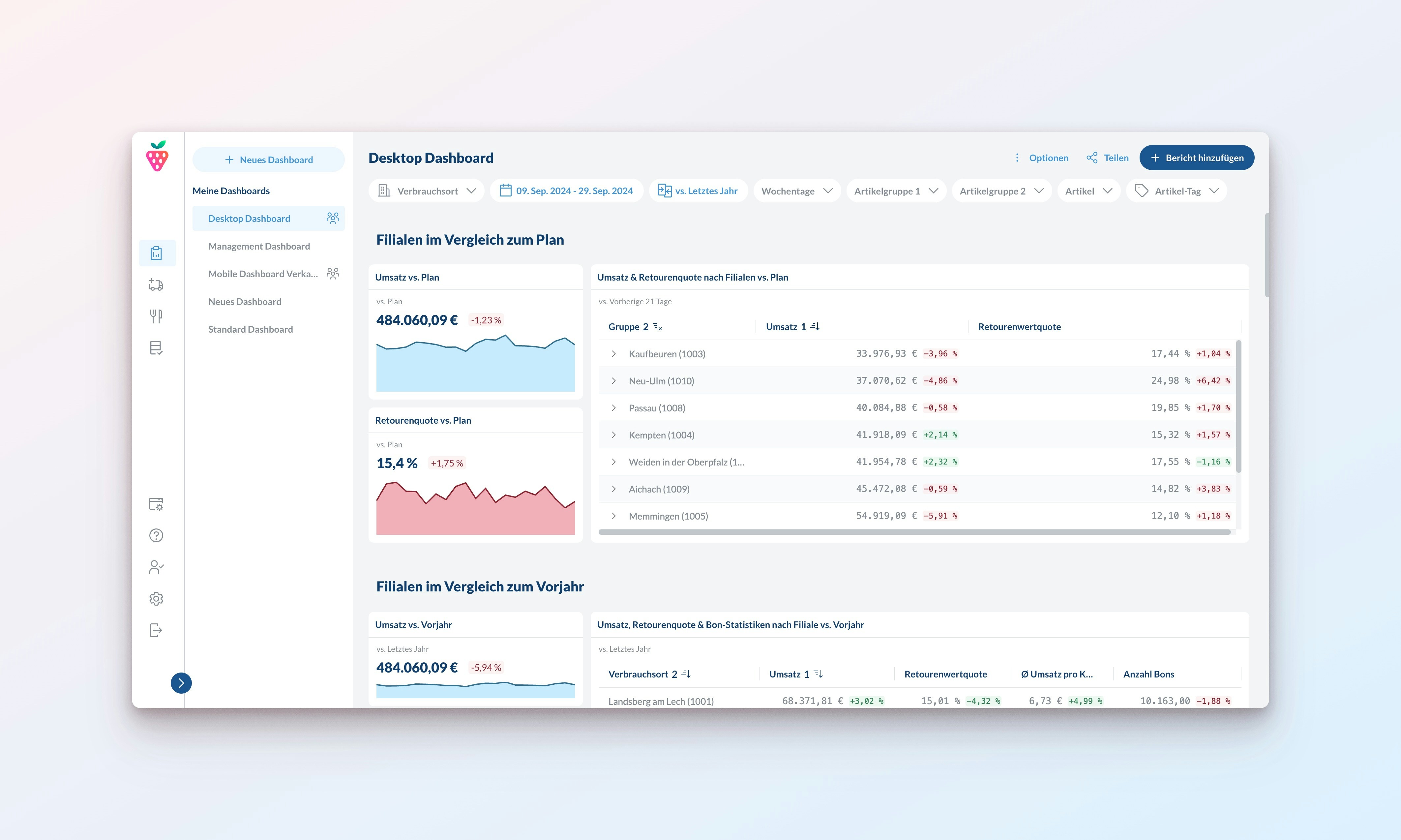 Hole das Beste aus deinen Geschäftsdaten mit unserer leistungsstarken Analyseplattform heraus. Ob du Verkaufszahlen verfolgst, Bestellmengen optimierst oder Wachstumschancen identifizierst - unsere Business Intelligence-Tools liefern dir die Einblicke, die du für fundierte Entscheidungen brauchst.Echtzeit-Analysen