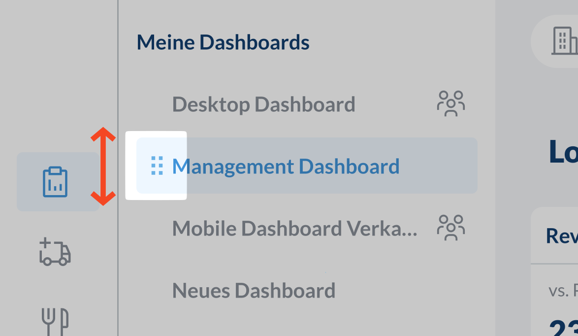 Ordne deine Dashboards durch Drag & Drop in der gewünschten Reihenfolge an