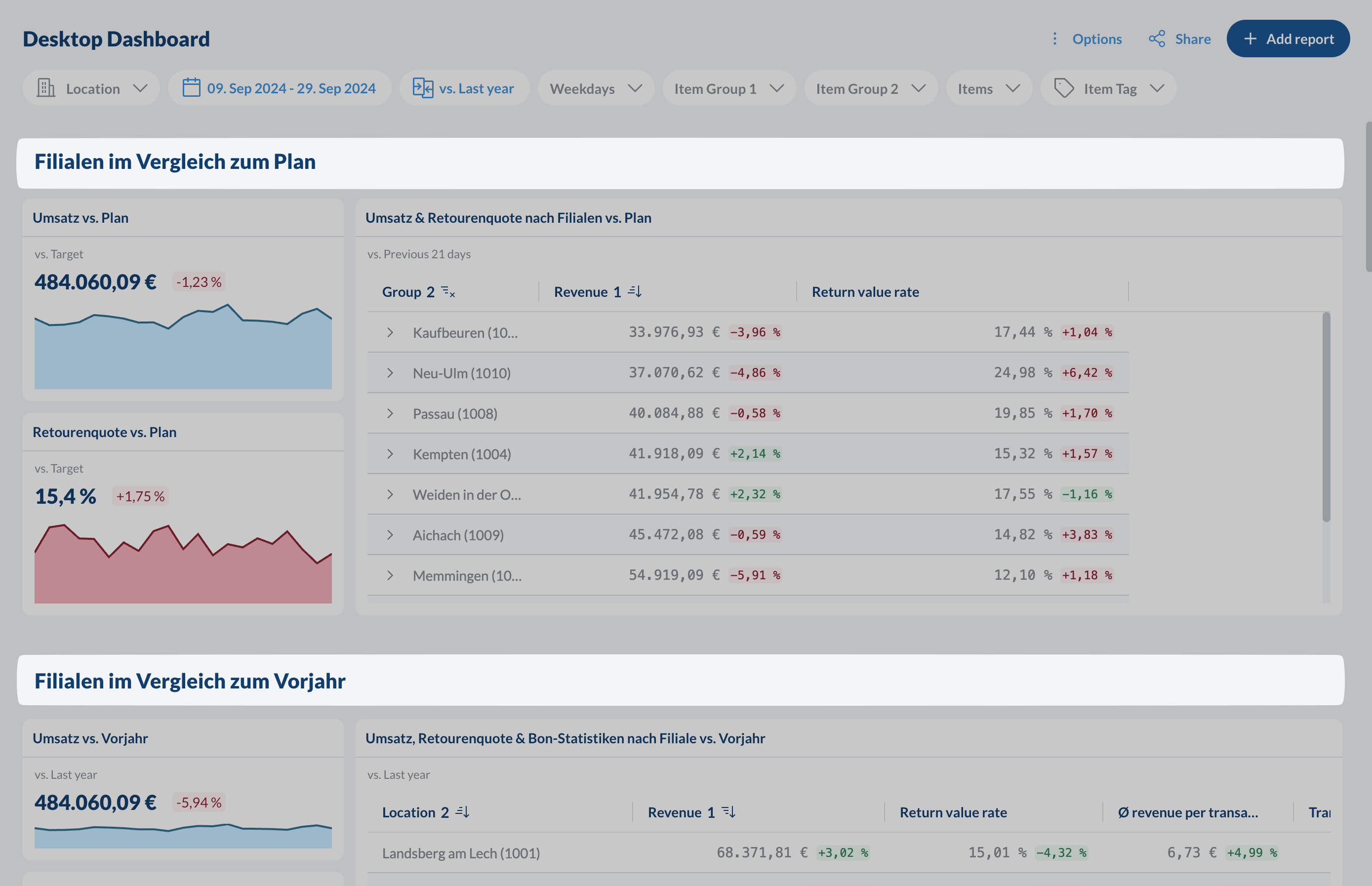 Überschreibe Dashboard-Filter für einzelne Berichte, um aussagekräftige Vergleiche zu erstellen:
