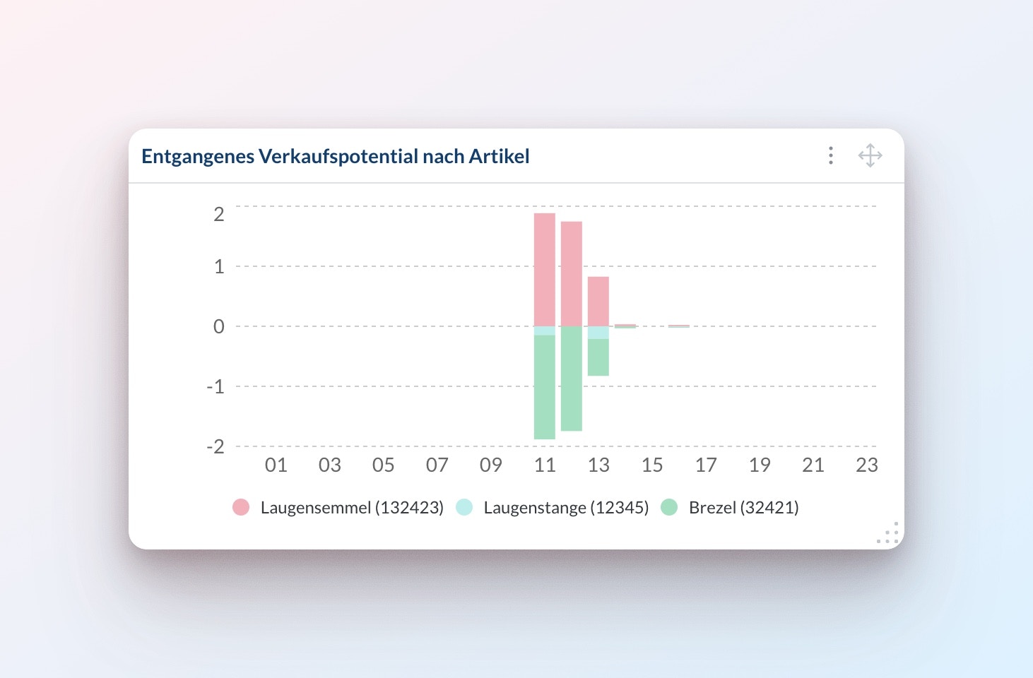 Um dasVerkaufspotenzial zu schätzen, analysiert unsere KI typische Verkaufsmuster über den Tag hinweg. Für jeden Artikel und Verbrauchsort betrachten wir: