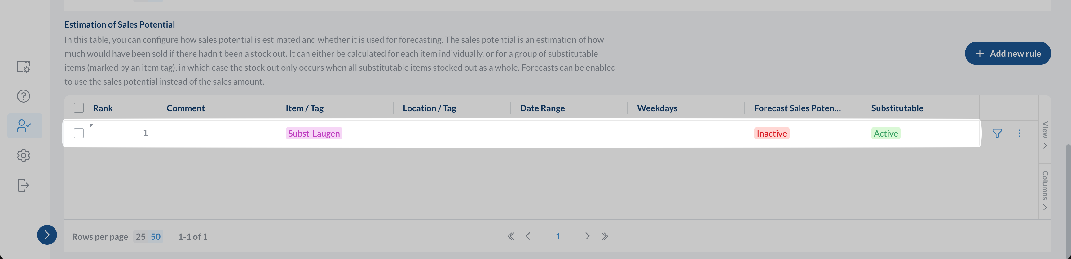 Verkaufspotenzial prognostizieren auf Ja setzen, um das Verkaufspotenzial anstelle der verkauften Menge zu prognostizieren. Weitere Details findest du in der Dokumentation zur Bestellautomatisierung.