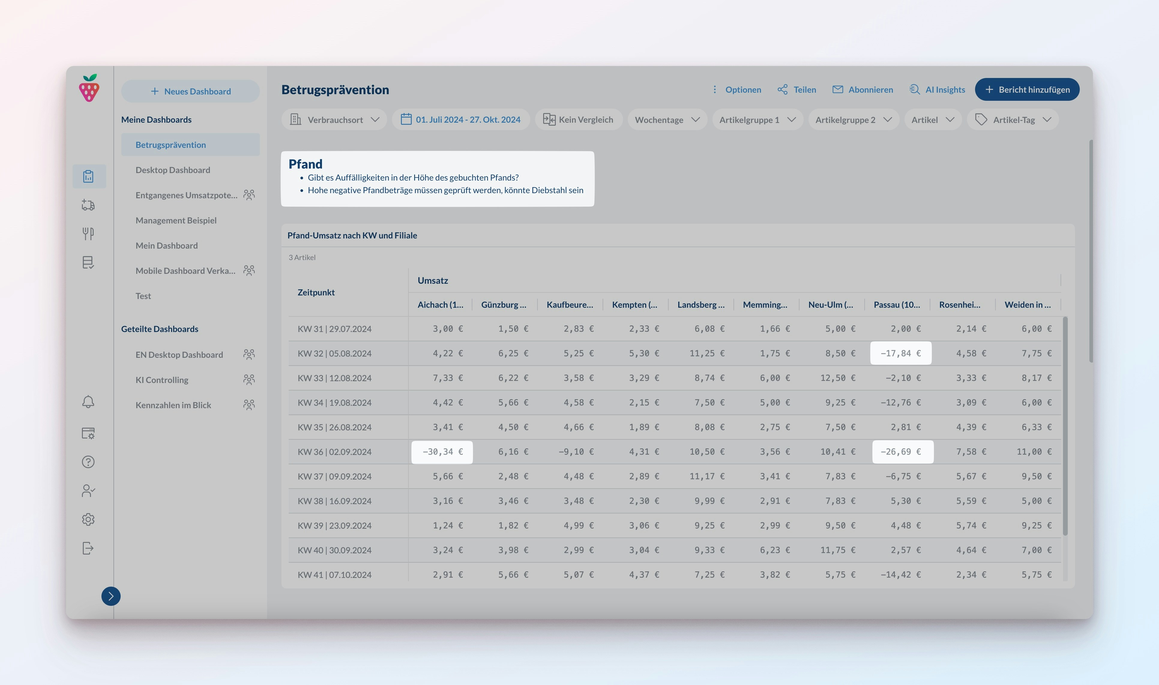 - Buchen meine Filialen verdächtig hohe Beträge an Pfandeinnahmen?